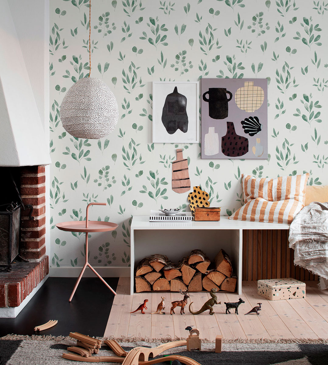 La naturaleza y el estilo nórdico se unen para crear ambientes cálidos donde apetece vivir. Las diferentes manchas de color dan forma a las ramas y hojas en tonos verdes, dibujados a mano el papel transmite la calidez y delicadeza de las cosas hechas a mano. Se convierte así en un básico para los amantes de la naturaleza.